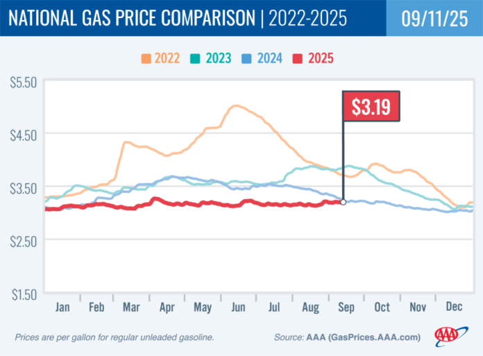 As autumn settles in, small business owners are starting to see changes at the gas pump, which can significantly impact operating costs. According to the latest data from AAA, gas demand is decreasing as drivers shift into fall routines, making way for the potential of lower pump prices. The current national average price for a gallon of regular gasoline has dipped slightly to $3.19.