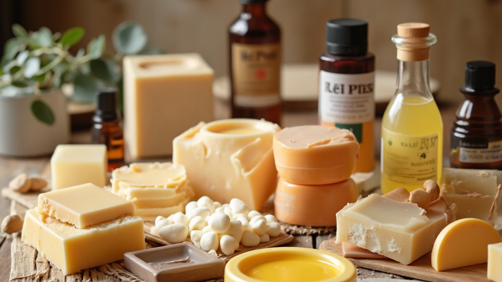 Oils and Butters: Utilize olive oil for mildness, coconut oil for superior lather, and cocoa butter for a hard bar with skin benefits. Enhance conditioning properties with options like castor oil.